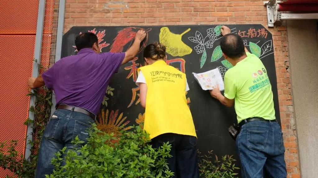益起设计志愿服务协会联合可益会在无锡红船场上演了一场充满爱与创意秋日风华” 主题黑板报绘制行动。4名樱花漫画