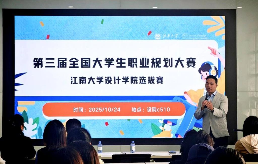 本次大赛特邀格力电器HR担任评委。在赛后点评中,他对选手们的整体表现给予了高度评价。他表示,同学们的作品“非常卓越”,尤其是部分作品在短短三秒内即成功抓住评委眼球,展现出极强的视觉冲击力与专业水准。他指出,参赛作品在版面编排、字体设计、表达逻辑及语速控制等细节处理上均表现到位,充分体现了同学们扎实的设计功底与良好的审美素养。针对后续优化,他建议持续打磨版面整洁度、内容清晰度与现场表现力,使作品能够更完整、精准地呈现设计初心,进一步提升整体竞争力。