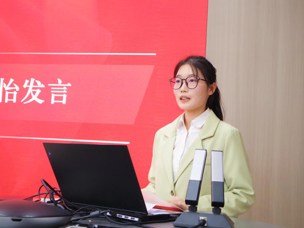 美术学 2202 班诸徐怡作为本期培训班学员代表发言。她首先代表全体学员向学院领导、老师及工作人员致以诚挚感谢,结合党的二十届四中全会精神,她号召全体设计学子将个人理想融入国家发展大局,深耕文化根脉传承,厚植时代精神内涵,以专业所长服务社会发展、以创新实践贡献国家建设。最后,她代表全体学员郑重承诺:将严守培训纪律、坚定理想信念、锤炼过硬本领,以青春之我、奋斗之我为党的事业添砖加瓦,为实现中华民族伟大复兴的中国梦贡献青春力量。