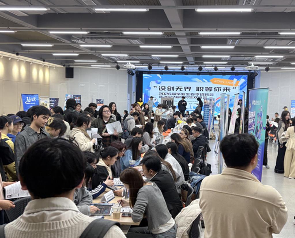 主办的"设创无界,职等你来"2026届毕业生春季招聘会暨2027届实习生双选会在北区大学生活动中心F105招聘大厅成功举办。本次活动以精准高效的校企对接机制,为设计学子搭建了高质量的职业发展平台。