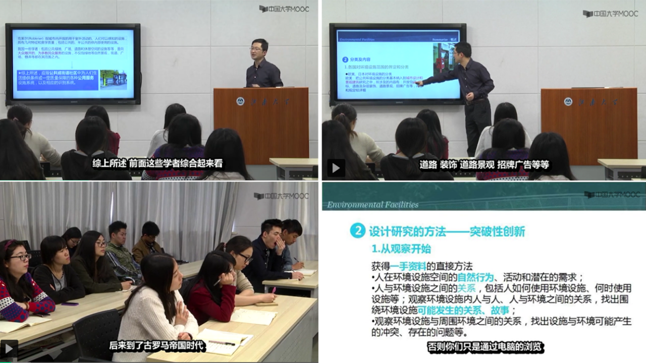 目前,《环境设施设计》已列为国家精品课程,并在国家高等教育智慧教育平台、中国大学MOOC平台开放,推动互联网优质教学资源共享。