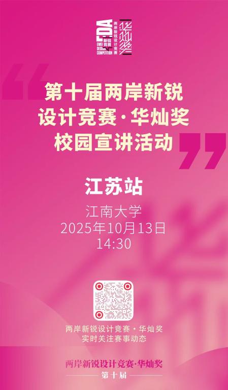 本次宣讲会将对第十届“两岸新锐设计竞赛•华灿奖”的征集情况进行详细介绍,并特别邀请定向主题专家进行线上与线下分享。专家将为有意向参赛的同学提供设计指导、灵感启发与方向建议。欢迎热爱设计的同学积极参与。