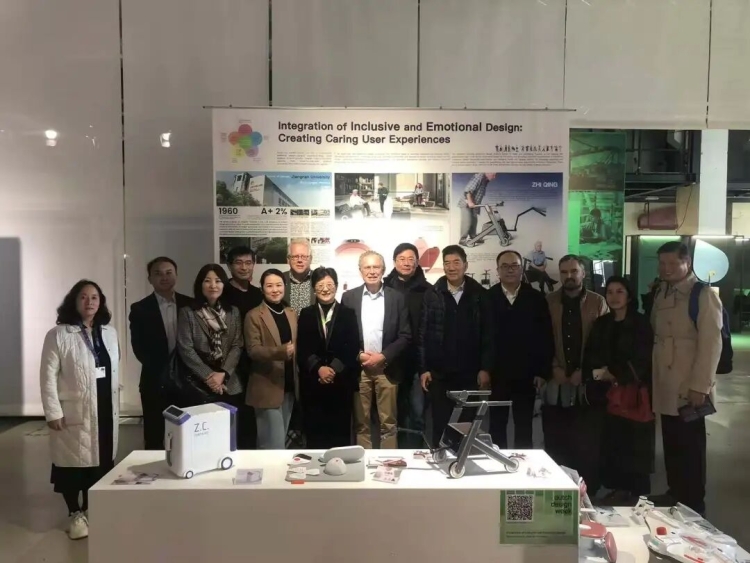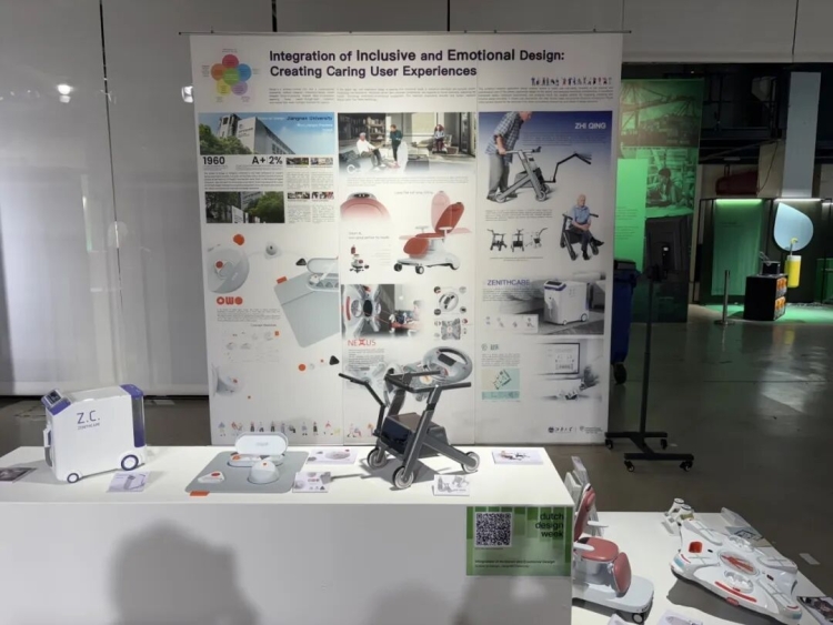 的参展主题为“包容性设计与情感设计的融合-打造关怀用户体验”,精心挑选了健康福祉方向的代表作前来参展,包括为老年工作者设计的办公产品、智能机械臂助行器、兼具智能陪伴与紧急救助功能的轮椅、适老化的认知训练产品、失能老人的助浴产品、以及办公室健身交互产品等等。