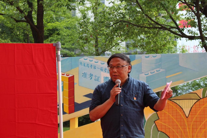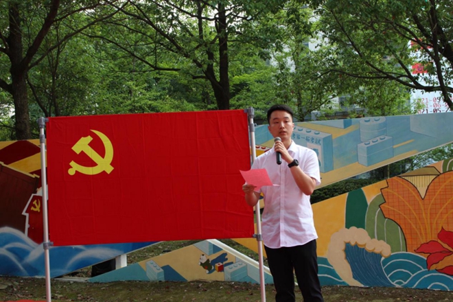 仪式最后,党委书记邱建平总结讲话。他首先代表学院党委对新党员表示欢迎和祝贺。随后对新党员提出希望:一要坚定“设计力量”,通过重温百年红墙的创作历程,他指出不管是墙绘内容还是绘画元素,都是对“江南设计人”设计力量的肯定。二要肩负“设计担当”,结合七一建党一百周年庆祝大会中的精彩瞬间,诠释领诵者“请党放心,强国有我”时代口号内涵,提出对学院青年的殷切希望。三要立志“设计强国”,通过回顾张福昌、林家阳、王沂蓬等知名校友的励志故事,启迪学子志存高远,为设计改变未来贡献自己的力量。
