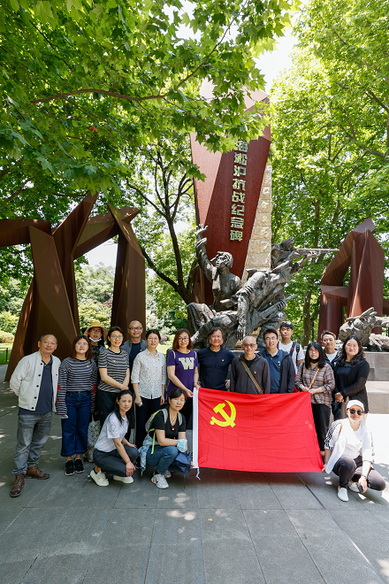 在上海淞沪抗战纪念碑前合影