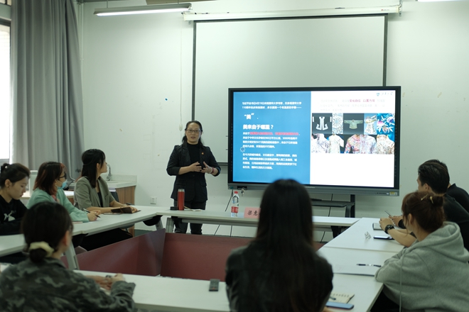 梁老师以APEC的服装设计经历为例,与服装专业本科生党员分享了在艺术创作中如何将深厚博大的传统文化、丰富多彩的民族文化融入,团队成员如何在国家任务面前发挥党员先锋模范作用,以扎实的工作作风与忘我的奉献精神创作了多套国家领导人服饰。她表示,习近平总书记在4月19日考察清华大学美术学院时,多次提到一个有温度的字眼——“美”。她勉励同学们除了时尚创新与专业技能外,应当牢记总书记寄语与嘱托,增强文化自信和家国情怀,以美为媒,用设计的力量让中国变得更“美”,让世界变得“美美与共”,推动国际文化交流。