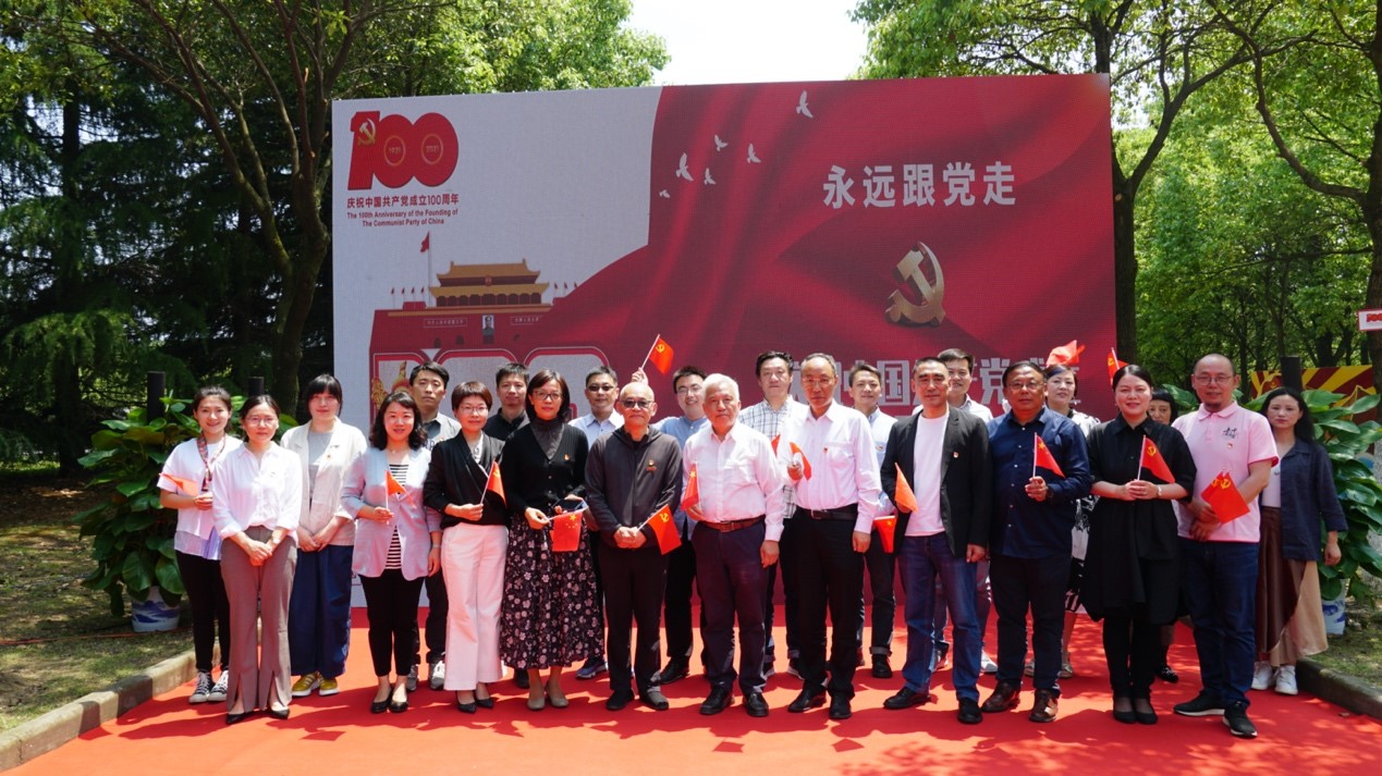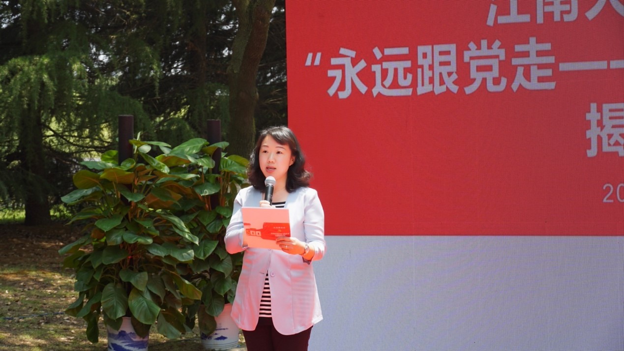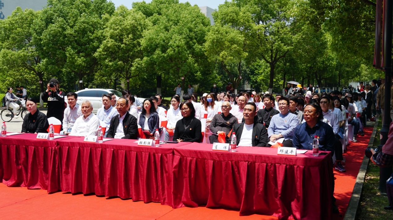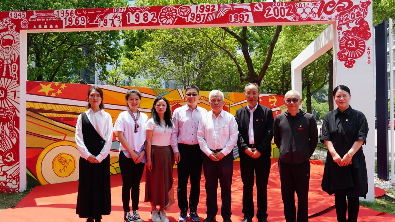 “永远跟党走——师生同绘百年红墙”揭幕仪式在学院“百年红墙”广场举行,校党委常委、组织部部长张影陆,校党委常委、党委办公室主任、统战部部长朱飞,无锡博物院党总支书记肖炜,樱花漫画