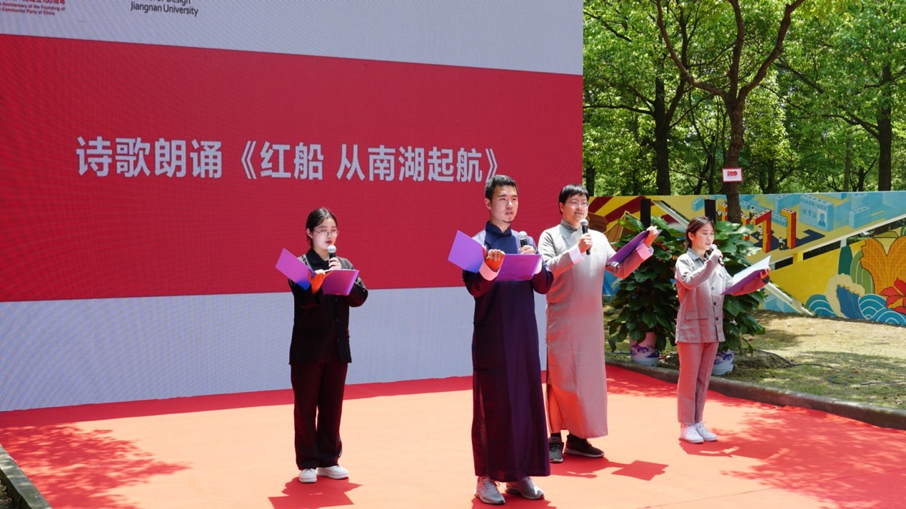 学生用一首诗歌朗诵《红船 从南湖起航》,创造性的表达了中国共产党从1921到2021,一百年风雨兼程,一世纪沧桑巨变的光辉历程,表达了莘莘学子对党的百年华诞的拳拳祝福。