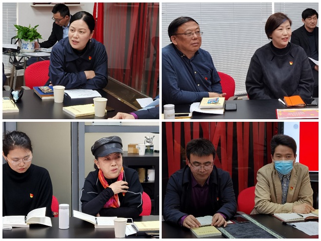 在支部成员交流发言环节,魏洁院长作为支部党员首先发言,她首先感谢陈卫校长参加支部活动,结合近期开展的党史学习教育,特别是习近平总书记赴清华大学考察时的讲话精神,她指出,党史学习教育、重温誓词是让每一个共产党人不忘初心,牢记使命;当下是设计学科发展的最好时机,无论是国家大背景还是学校的顶层设计,都十分重视设计学科的发展,设计学科要紧跟时代发展,强化艺术与设计在新时代服务国家社会经济发展、服务人民美好生活的重要使命与担当,学科交叉相促进,艺术技术相融合,把握大势,敢于担当,善于作为,为服务国家富强、民族复兴、人民幸福贡献力量。原支部书记代福平老师在发言中表示,学党史、悟思想、办实事、开新局,党史学习教育的十二个字,是每一位党员在学习中必须要牢记和践行的,学习党史,有助于我们回望入党誓词,牢记初心使命,在学习和深化的过程中不断践行我们党全心全意为人民服务的宗旨,不断坚定理想信念。王安霞教授在发言中表达了作为一个老党员的入党初心,分享了在党史学习教育过程中,特别是近日对总书记到清华大学考察讲话的学习中感受到的设计学科发展的鼓舞和振奋。