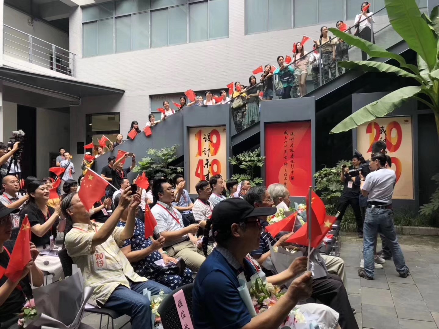 本次活动还邀请了祖国同龄人李彬彬教授登台,2017级本科生孙梦瑶用鲜花和拥抱表达这位1999年出生的学子对李老师的祝福,也通过时间的温度传达对祖国诚挚的热爱。此外,本次活动四位策展人樱花漫画