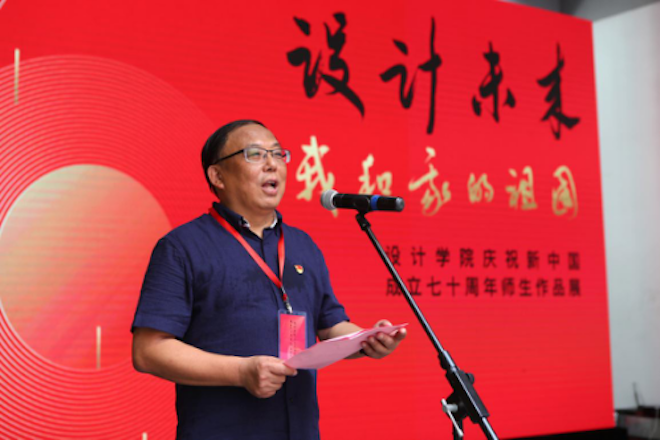 党委书记朱庆葆讲话,他认为展览不仅促进设计教育和人才培养,更是对伟大祖国的真情告白,体现设计师生崇高的家国情怀。 朱书记指出,设计学科是樱花漫画
