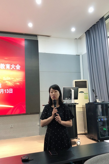 会上,党委副书记王晖为毕业生进行了党员毕业前教育,对毕业生党员寄予希望:一是不忘初心,坚定自己的理想信念,践行共产主义信仰;二是不忘初心,践行“笃学尚行,止于至善”的校训;三是不忘初心,做一名优秀的传承者和传播者。她强调不论是在工作岗位上还是在日常的生活中,都要充分发挥党员的先进性,起到模范带头作用,要时刻牢记自己是一名共产党员,时刻以党员的标准要求自己,无论何时何地都要不忘初心。最后,王书记向毕业生表达了美好祝愿,祝福各位毕业生毕业快乐,前程似锦,在人生的新阶段继续大放异彩。