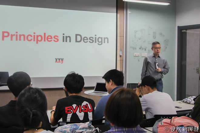 辛教授在本次公开课讲授的主题是“Principles in Design”(设计中的原则),他赠与同学们一句话:在进步和成长的道路上,原则和信仰比获取知识、掌握技能更重要。并讲述了设计原则和思想的重要性,以及作为设计师所必须具有的职业道德和社会责任感。