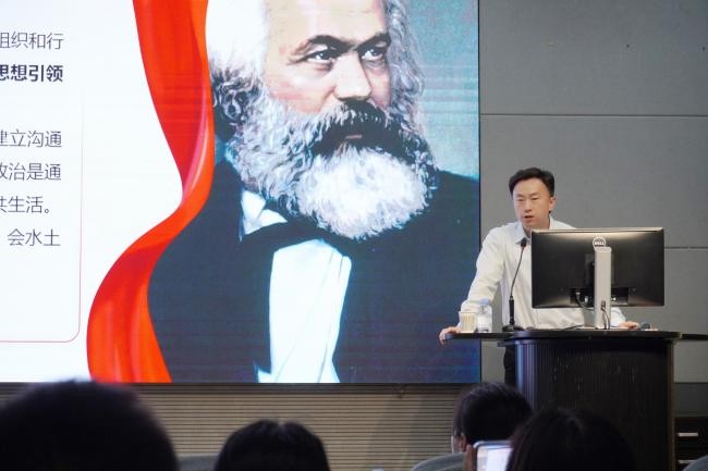 王维表示,中国共产党是在马克思主义建党学说指导下,按照民主集中制原则建立起来的世界最大政党,在世界上人口最多的中国长期执政。并以中国共产党与世界政党高层对话会海报《共饮一泓水》和《美美与共、和而不同》为例,从设计专业的角度为与会人员进一步揭开了党的神秘面纱。同时强调,大学生是国家治理的有生资源,青年群体中更是蕴含着塑造现实和决定未来的潜在力量,对执政党的认同应遵循“理性选择”,而一旦选择了入党,就要持续保持坚定的理想信念和严肃的纪律约束,这也是中国共产党能够历经磨难走向辉煌的精神密码。
