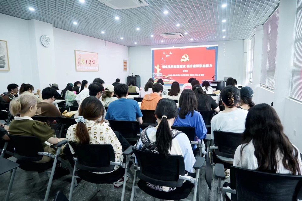 王维青在总结讲话中对唐忠宝教授内涵丰富又生动活泼的讲座表示感谢,他指出,全体师生党员要深入学习贯彻习近平新时代中国特色社会主义思想,摒弃历史虚无主义,厘清意识形态,饱含家国情怀,传承中华血脉,要立足本职专业努力学习,提高师生党员的纪律意识,以更加严明的纪律、更加优良的作风迎接新的风险和挑战,切实用纪律建设的实际成效在服务强国建设、民族复兴中发挥积极作用,为写好“教育强国、江南何为”的时代答卷贡献力量。