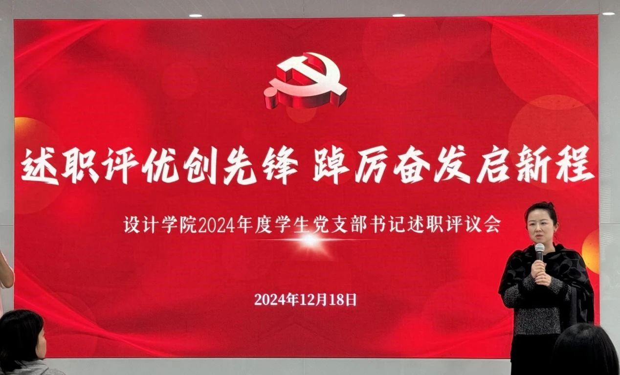 会上,各学生党支部围绕支部过去一年的基本情况、理论学习、组织建设、活动开展、支部现存问题及下一步工作思路和整改措施等展开详细述职汇报。其中,本科联合第一党支部开展 “清风正纪守初心”党纪文化作品专题设计展、“筑梦乡土研习社”、设计学子与无锡古竹“相约‘梅’好等一系列主题党日活动,推动理论学习与实践相结合;本科联合第二党支部成功举办了一系列以“严守党纪,不忘初心”主题党课为代表的党纪理论学习教育活动,不断提高党员工作的创新意识;交互设计党支部作为全国高校“百个研究生样板党支部”,发挥专业特色,打造“党团携手”的优秀做法;公共艺术与美术党支部党员充分发挥先锋模范作用,在2024年中共发表论文三篇,其中SCI收录2篇,荣获国家级学科竞赛奖10余项,省级学科竞赛20余项,实用新型专利1项,支部党员创先争优,彰显青春风采;环境设计研究生第一党支部每月开展如“重温党史光辉,担当时代使命”、“回顾党的二十大精神系列图书心得分享会”、师生党员培训会交流等支部活动,获得支部成员的一致好评;环境设计研究生第二党支部善用线上学习平台,组织专题党课、理论研讨等活动,开展了特色主题活动——“听书记讲党课”,增强党员的政治觉悟。在场13位支部书记牢记初心,不忘使命,在回顾过去一年工作成绩的同时,认真查摆问题、总结不足、提出整改方案并制定下一年的工作计划,充分展现了各支部积极向上的精神面貌和严谨认真的工作态度,以及 “一支部一特色”的建设成果和“我为师生办实事”的先进举措。