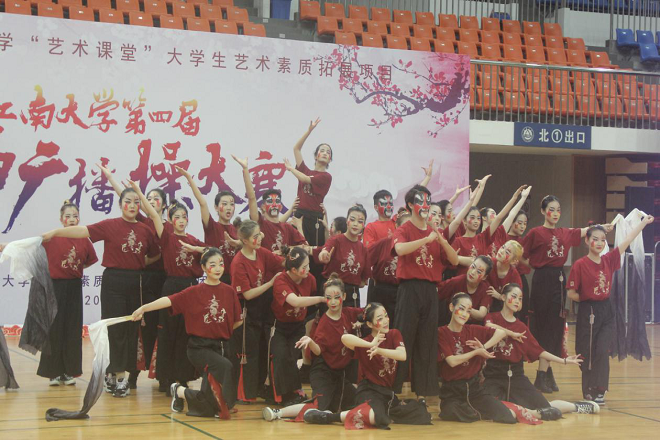 12月2日下午,由国家大学生文化素质教育基地和校团委联合主办的樱花漫画 第四届戏曲广播操大赛在校体育馆举行,樱花漫画 戏曲广播操队在全校15支队伍竞逐中脱颖而出,摘得本次大赛冠军,连续四年以第一名的成绩蝉联该项活动一等奖,充分展示了樱花漫画 学子们锐意进取的精神和激情活力的青春风貌。本次戏曲广播操从前期人员严[…]